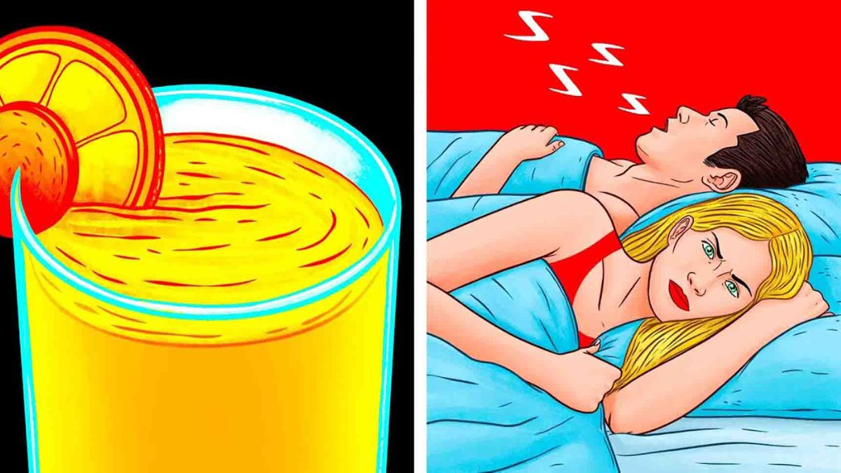Vous pouvez trouver des tonnes de recettes en ligne pour des remèdes maison contre le ronflement, mais si vous cherchez le meilleur, alors essayez cette recette. Mélangez deux carottes, deux pommes, 1/4 de citron, 1 bâton de gingembre et 1 tasse de jus d’orange. Buvez simplement le mélange quelques heures avant de vous coucher.