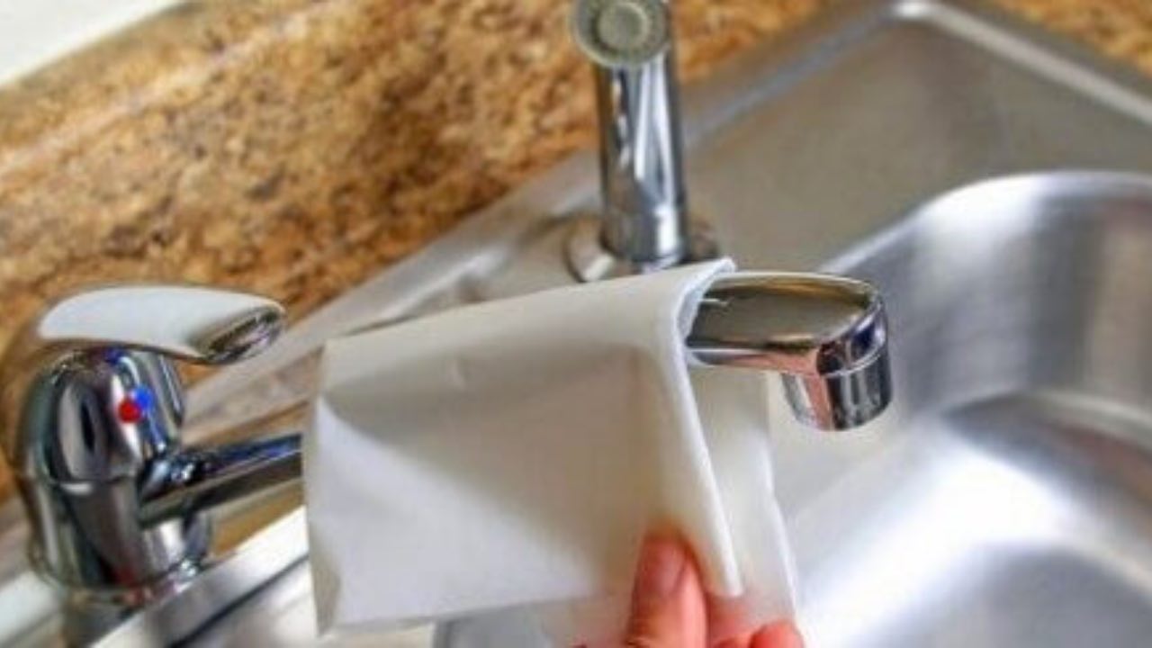 Il suffit de frotter une feuille de papier sulfurisé sur le robinet de la cuisine pour obtenir un résultat époustouflant. Voici ce que vous devez faire.