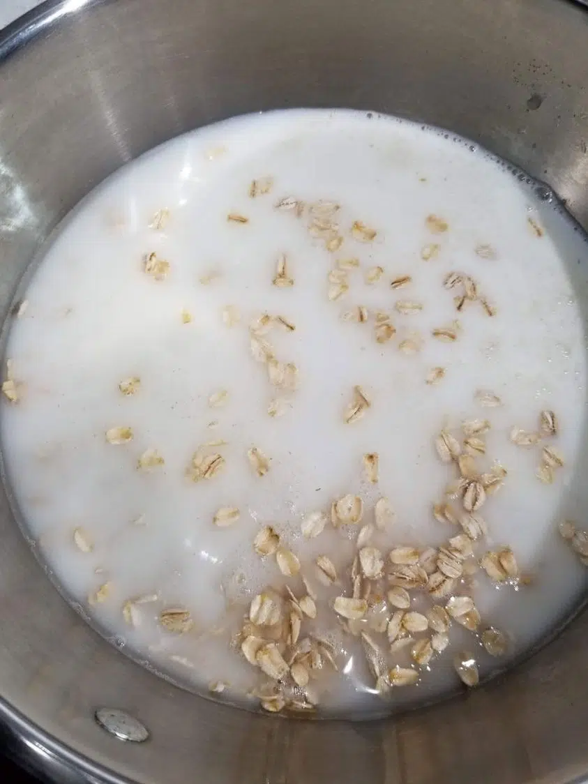 Ingrédients de l’eau d’avoine pour perdre du poids : 750 ml d’eau, 90 grammes de flocons d’avoine et une cuillère à café de cannelle en poudre.