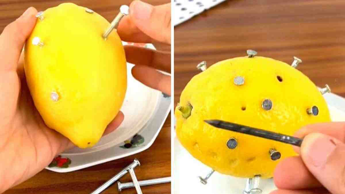 Cette astuce que nous allons tester aujourd’hui consiste à faire un engrais fait maison pour éviter aux plantes d’être en manque de fer. Pour cela, nous avons besoin de deux ingrédients faciles à trouver, c’est-à-dire un citron et des clous.
