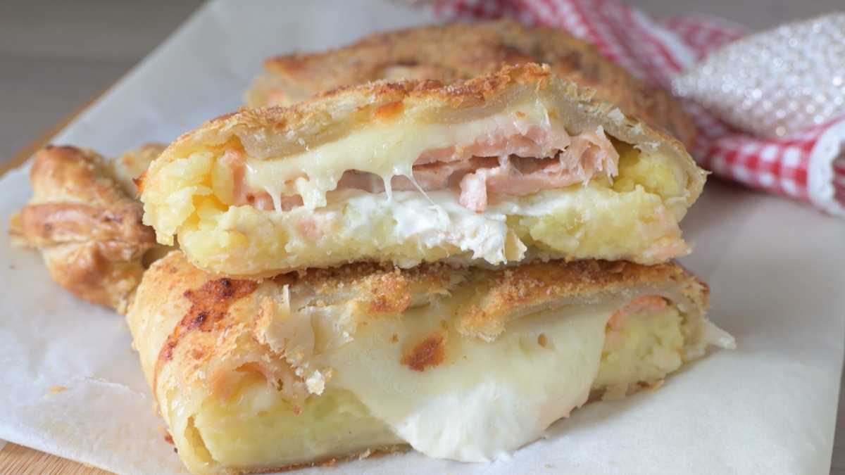 La recette d’aujourd’hui prévoit l’utilisation de la pâte feuilletée farcie de crème avec une crème de  pommes de terre, saumon, philadelphia ou un autre fromage à tartiner.