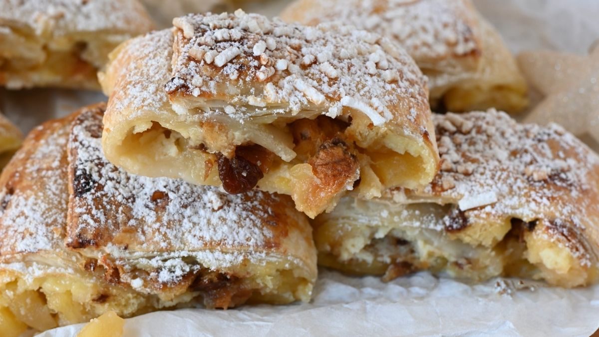 Feuilletées de pommes et panettone, une recette simple avec la pâte feuilletée, réalisée en quelques minutes idéale pour recycler le pandoro ou le panettone.