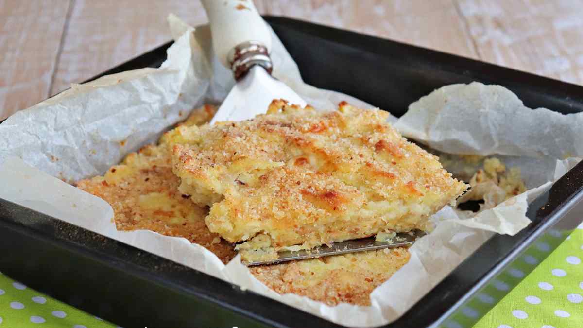 – Récupérez la purée dans un bol et ajoutez l’œuf, le fromage râpé, le beurre fondu, le lait, le sel, le poivre, le thon bien égoutté et la scamorza coupée en dés.