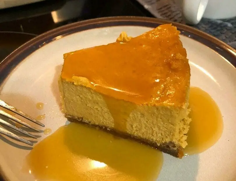 Laissez-les sécher sur une serviette en papier. Elles seront un peu collantes. Une fois que c’est fait, sortir le gâteau, le recouvrir de noix de pécan confites et de sauce au caramel. Servir immédiatement !