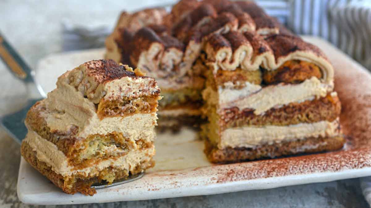 Gâteau de biscuits au café, un gâteau froid et rapide avec peu d’ingrédients. On le prépare en quelques minutes et on le laisse refroidir au congélateur pendant une heure avant de le servir.