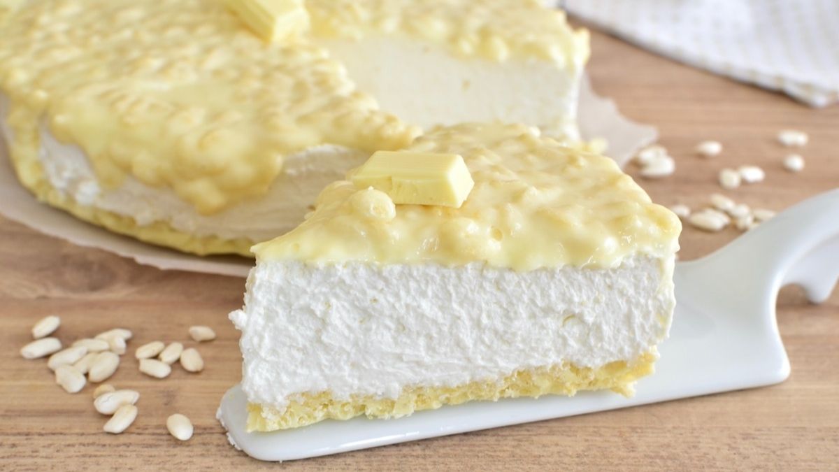 Gâteau de riz soufflé et chocolat blanc, un dessert sans cuisson, facile et gourmand, idéal comme dessert de fin de repas, prêt en très peu de temps.
