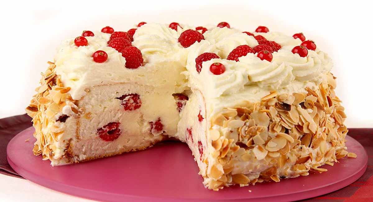 Cette gourmandise se compose en quelques étapes, le biscuit ou la génoise, la garniture à la crème et à la framboise ; et la décoration avec les amandes effilées et quelques framboises.