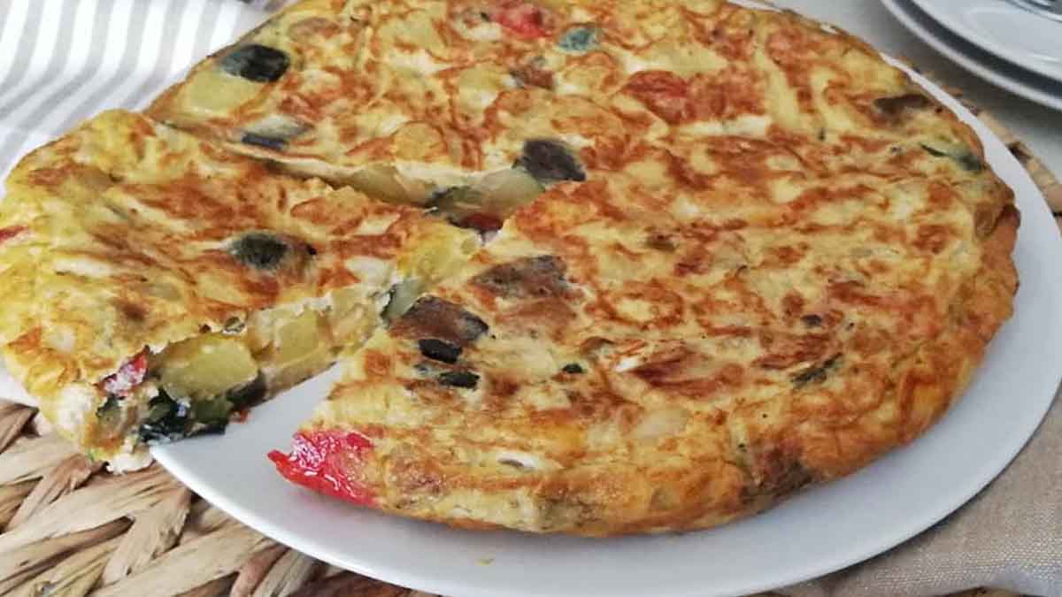 La généreuse tortilla de pommes de terre aux légumes grillés est prête, bon appétit !