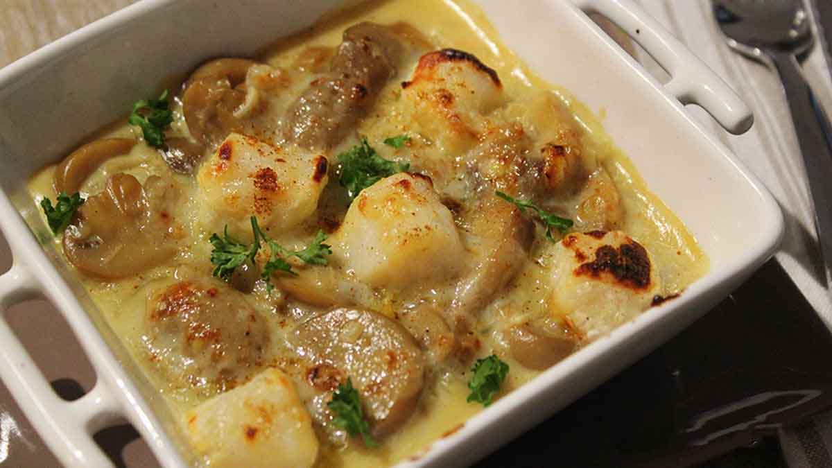 Comment faire le splendide gratin de Saint-Jacques crémeux aux champignons ?