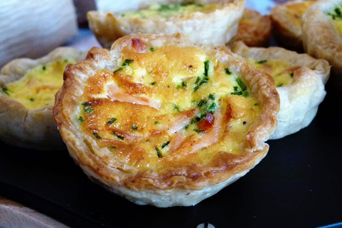 Mini quiches au Saumon: Bon marché et faciles à réaliser, ces mini quiches seront idéales pour un apéritif dînatoire, un buffet ou une entrée. Pâte brisée, oeufs, fromage frais, crème, saumon fumé et aneth suffiront à les réaliser.