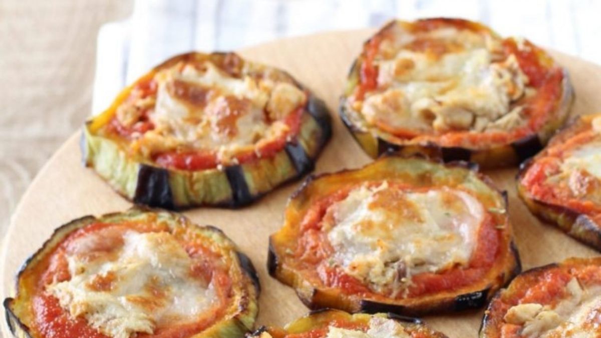 Salut les amis, aujourd’hui je vous propose la pizza d’aubergine ou aubergines façon pizzas au thon et aux tomates, facile, rapide et excellente à servir chaude ou froide. Une recette parfaite pour les buffets. Aubergines façon pizzas cuits au four, idéales pour ceux qui suivent un régime hypocalorique. Une recette ultra rapide et facile à préparer !