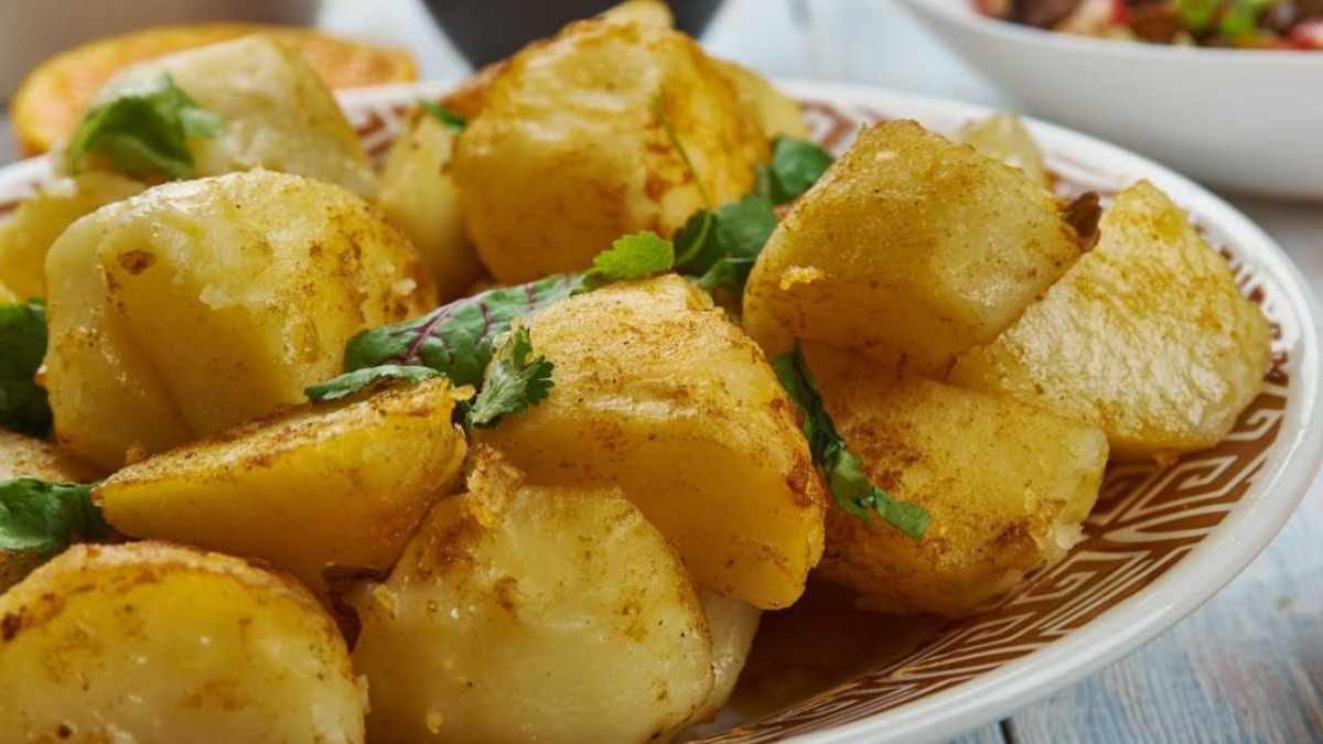 - Séchez les pommes de terre épluchées avant de les couper en petits morceaux.