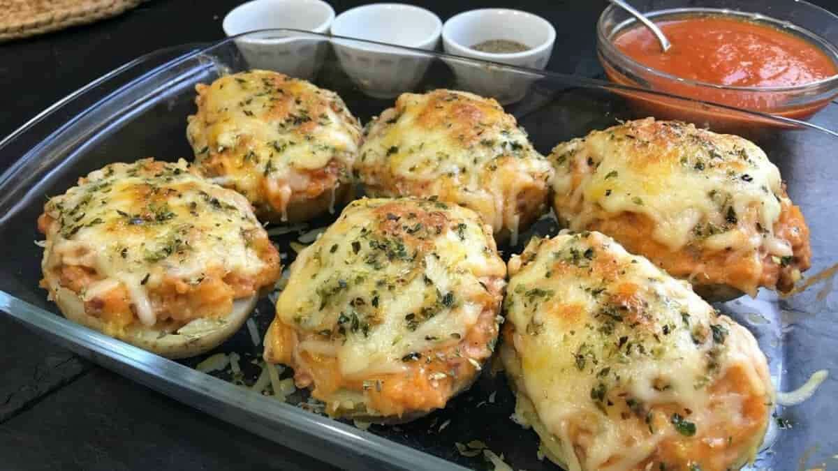 Remplissez chacune des moitiés de pommes de terre avec le mélange et placez-les dans le plat où il va être cuit. Placer une demi-cuillère à café de sauce tomate sur chaque garniture et couvrir de fromage râpé. Saupoudrez d’un peu d’origan ou de l’épice de votre choix. Entrez dans le four et gratinez jusqu’à obtenir une belle couleur dorée. Servir chaud.