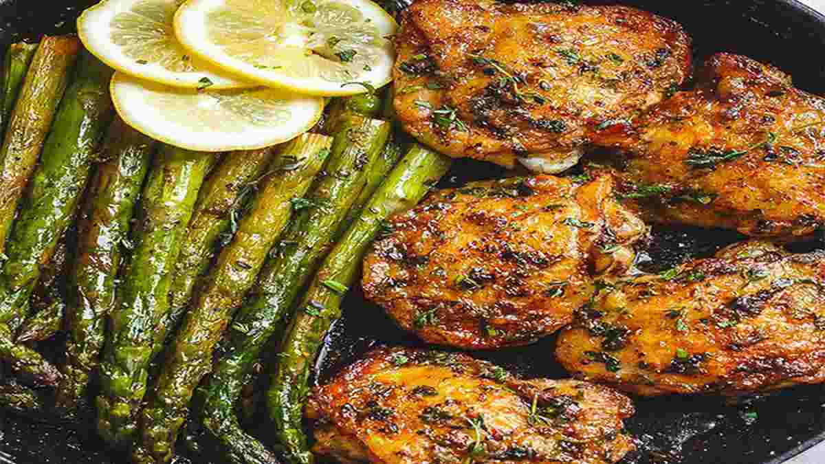 Votre Poulet Aux Asperges avec de l’ail au beurre est prêt !