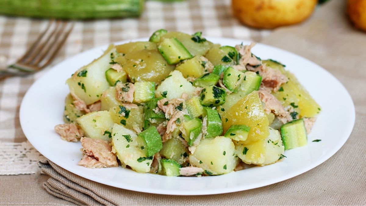 Salade de pommes de terre courgettes et thon, une salade fraîche, facile et très rapide à préparer, spécialement quand vous navez pas envie de cuisiner.