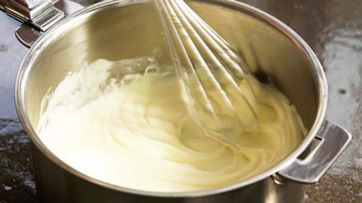 Par la suite, ajouter progressivement le lait froid, tout en fouettant pour éviter la formation de grumeaux