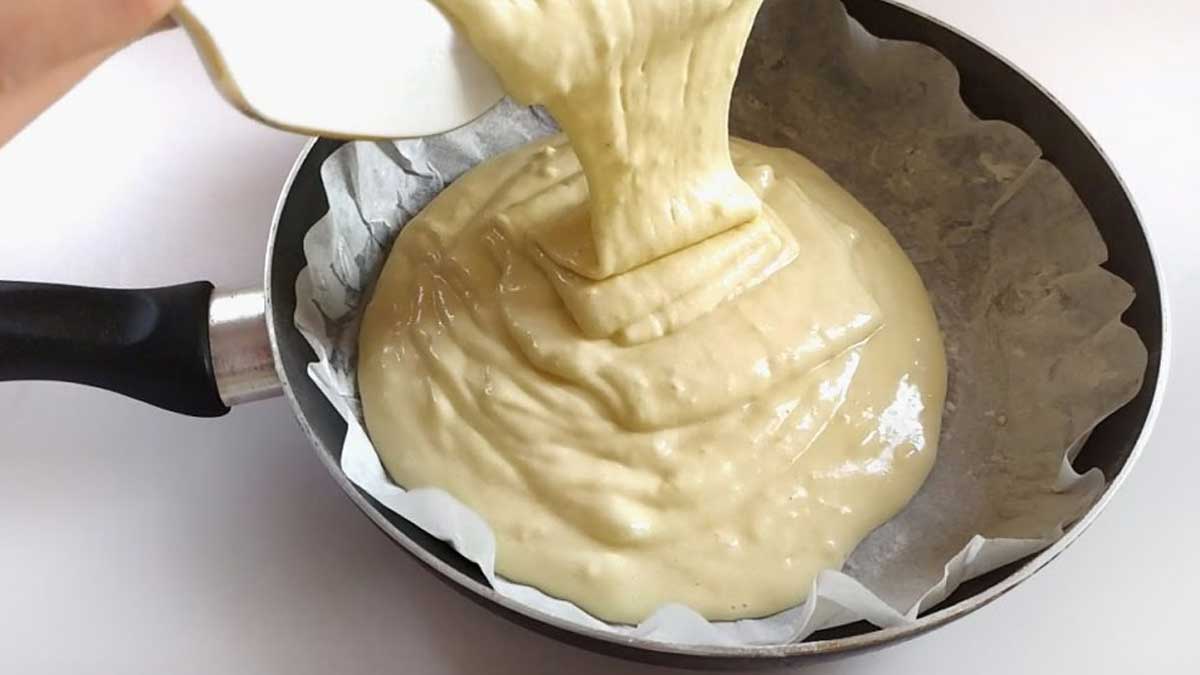 Après, couler la pâte préparée dans cette poêle antiadhésive préparée également.
