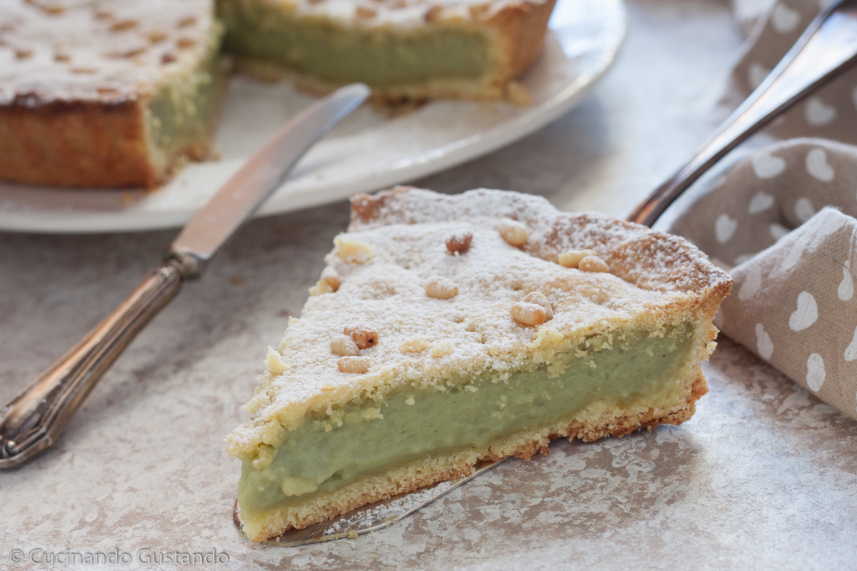 La tarte à la pistache de grand-mère est une recette facile à la pistache : une tarte à la crème pâtissière avec une base de pâte sablée à la pistache. Une tarte délicate et délicieuse que vous devez absolument essayer !