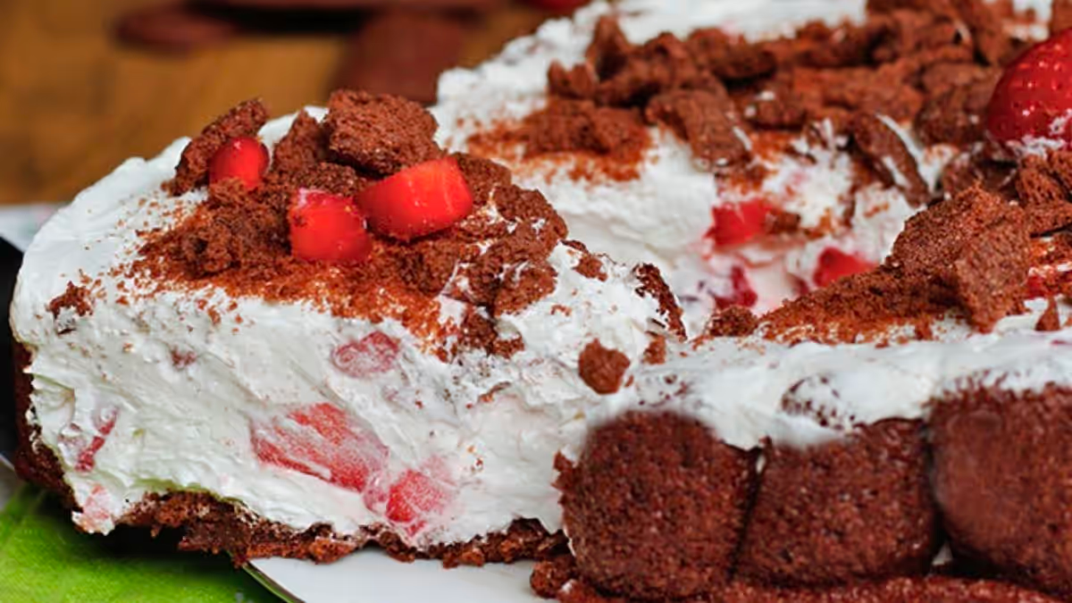 Tarte aux fraises et à la crème fouettée sans cuisson, un dessert très facile, rapide et extra crémeux que j’ai préparé avec des biscuits pavesini au cacao, mais que vous pouvez préparer avec des sablés au cacao. L’avantage de cette recette, c’est que vous pouvez la réaliser avec tous les fruits que vous aimez, vous devriez l’essayer avec des cerises ou des fruits rouges. En bref, c’est une tarte vraiment polyvalente et parfaite pour toute occasion.