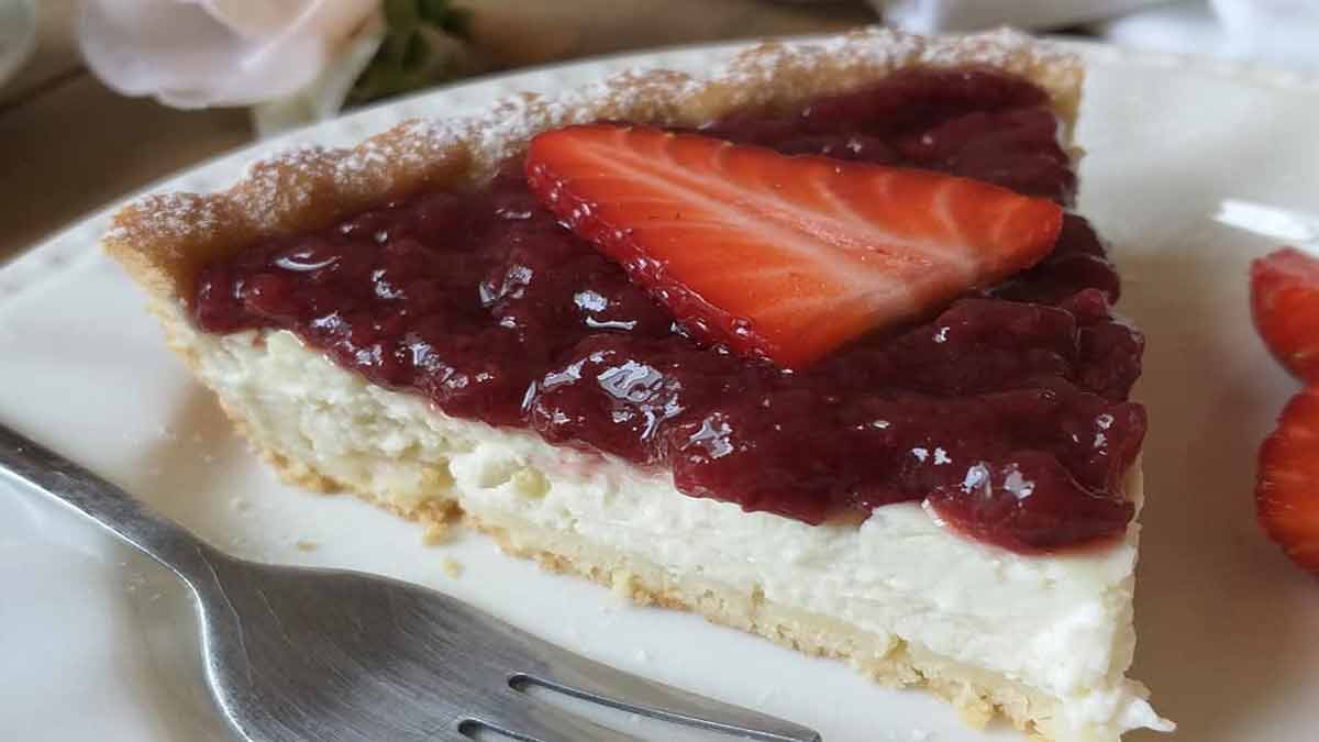 Appréciez la tarte fourrée à la ricotta et confiture après un repas.