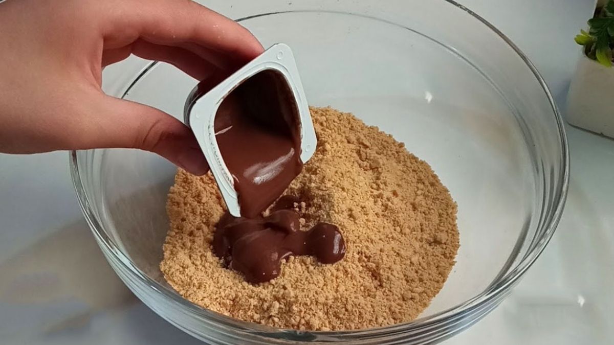 - Incorporez-y le yaourt au chocolat et mélangez bien jusqu’à obtenir un mélange homogène