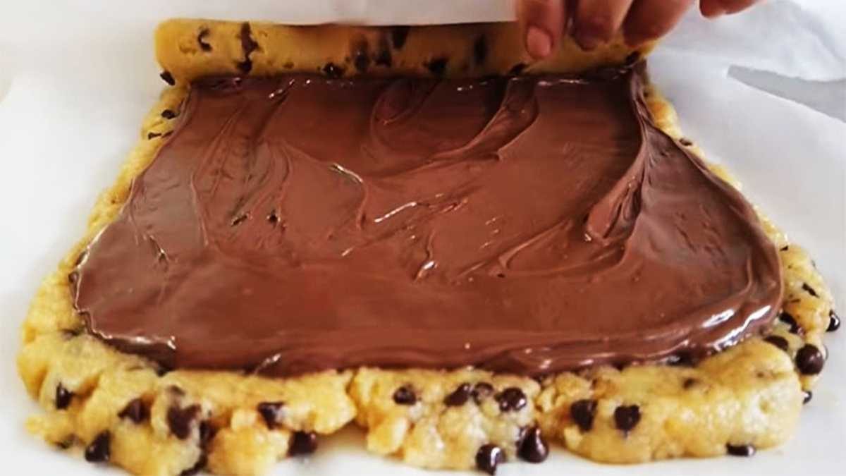 - Ensuite tartinez la pâte de nutella et roulez-la sur elle-même.