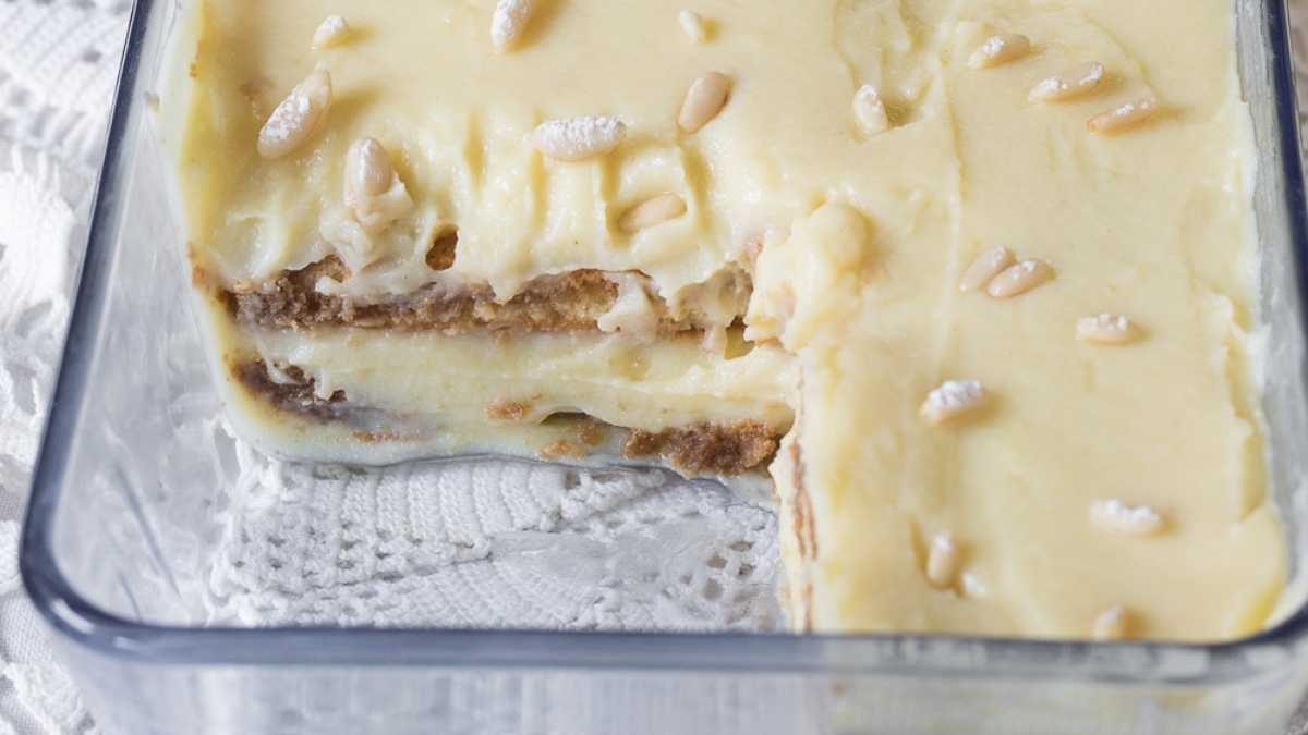 De nombreuses couches de boudoirs imbibés dans le café, entrecoupés de crème pâtissière veloutée et pignons de pin. Un dessert rapide et facile, prêt en quelques minutes.